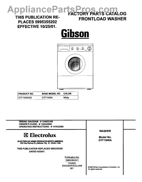Parts for Gibson GTF1040AS0: 01 - Cover Parts