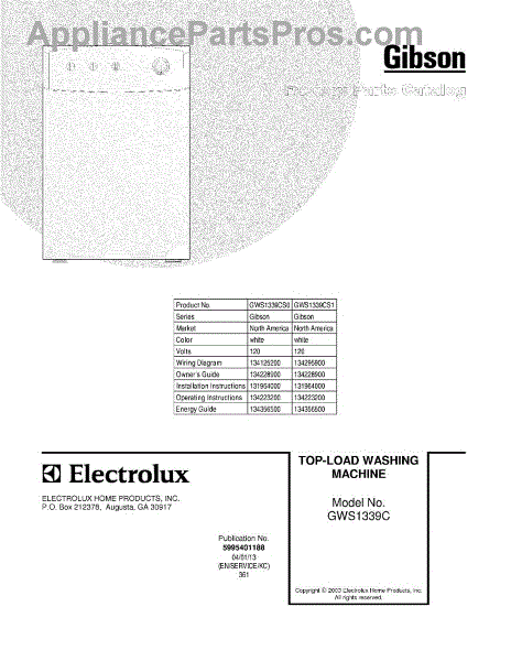 Parts for Gibson GWS1339CS0: 01 - Cover Parts