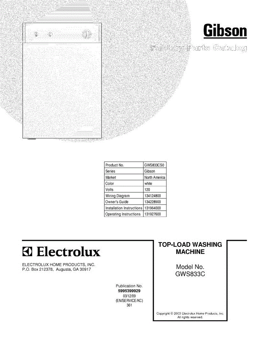 Parts for Gibson GWS833CS0: 01 - Cover Parts