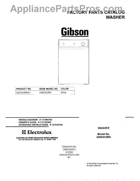 Parts for Gibson GWX433RHS1: 01 - Cover Parts