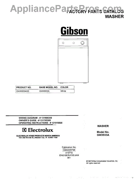 Parts for Gibson GWX933AS0: 01 - Cover Parts