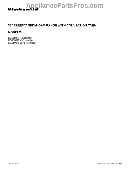 Parts for Kitchenaid KGSS907SBL03: 00 - Cover Page Parts