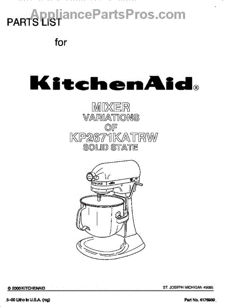 Parts for Kitchenaid KP2671KATRW: Cover Parts
