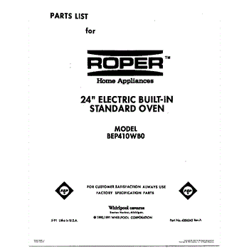 Parts for Roper BEP410WB0: 01 - Cover Parts