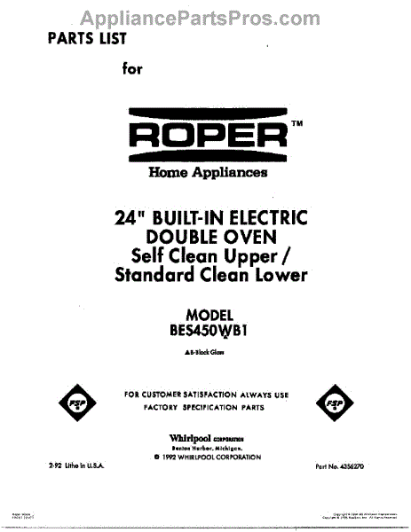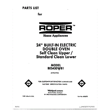 Parts for Roper BES450WB1: 01 - Cover Parts