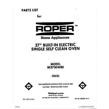 Parts for Roper BES730WB0: 01 - Cover Parts