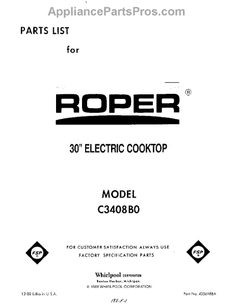 Parts for Roper C3408B0: 01 - Cover Parts