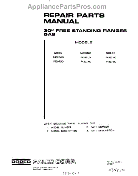 Parts for F4397W0
