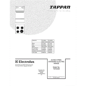 Parts for Tappan TEF242BU2: 01 - Cover Parts