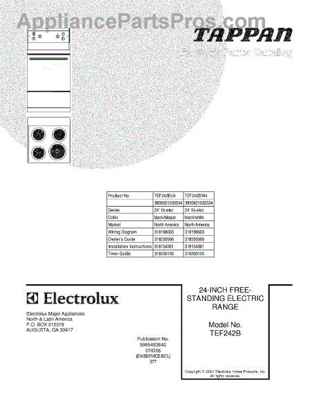 Parts for Tappan TEF242BU4: 01 - Cover Parts