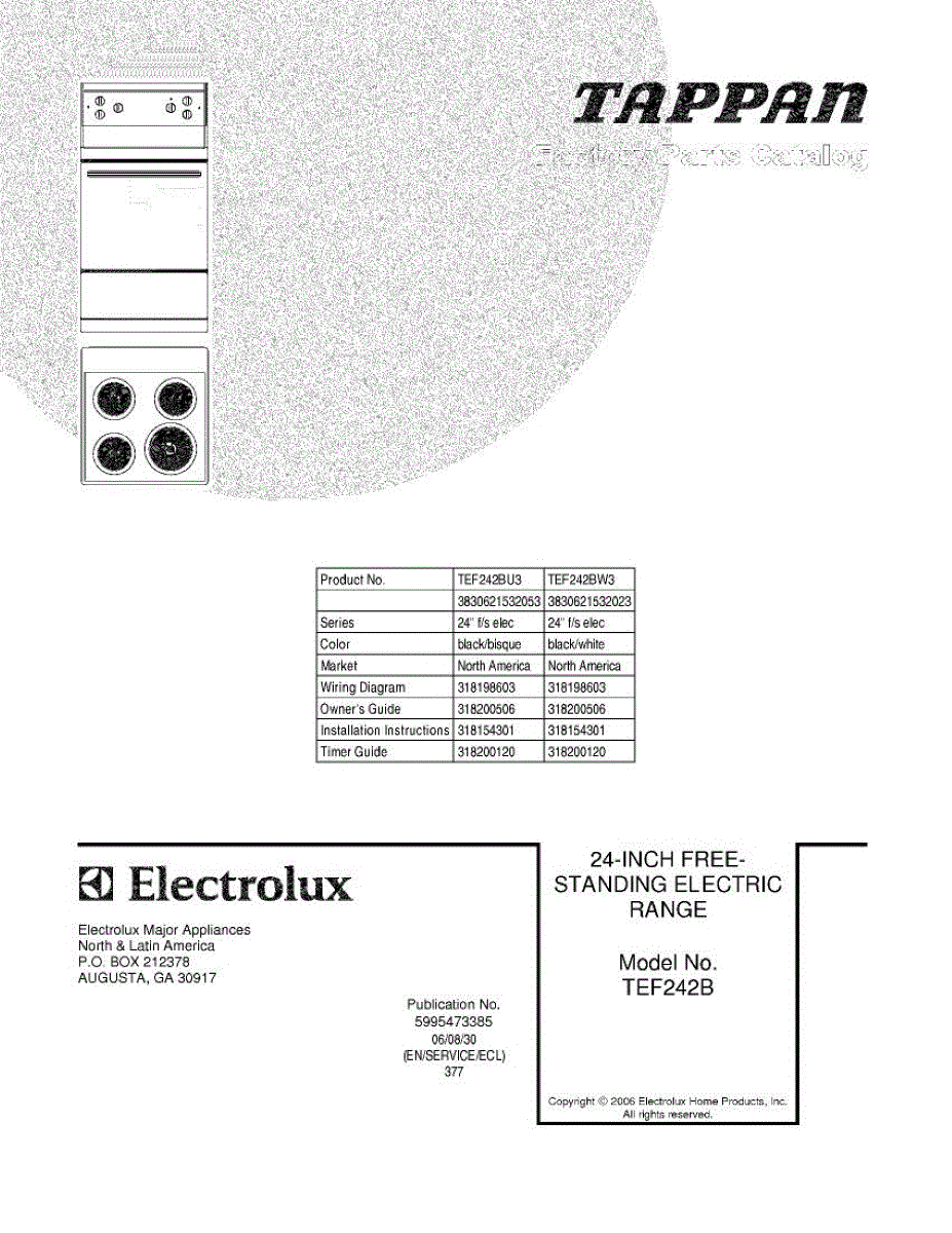 Parts for Tappan TEF242BW3: 01 - Cover Parts