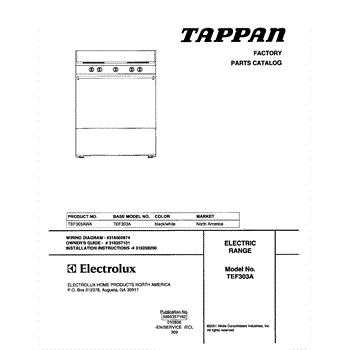 Parts for Tappan TEF303AWA: 01 - Cover Parts