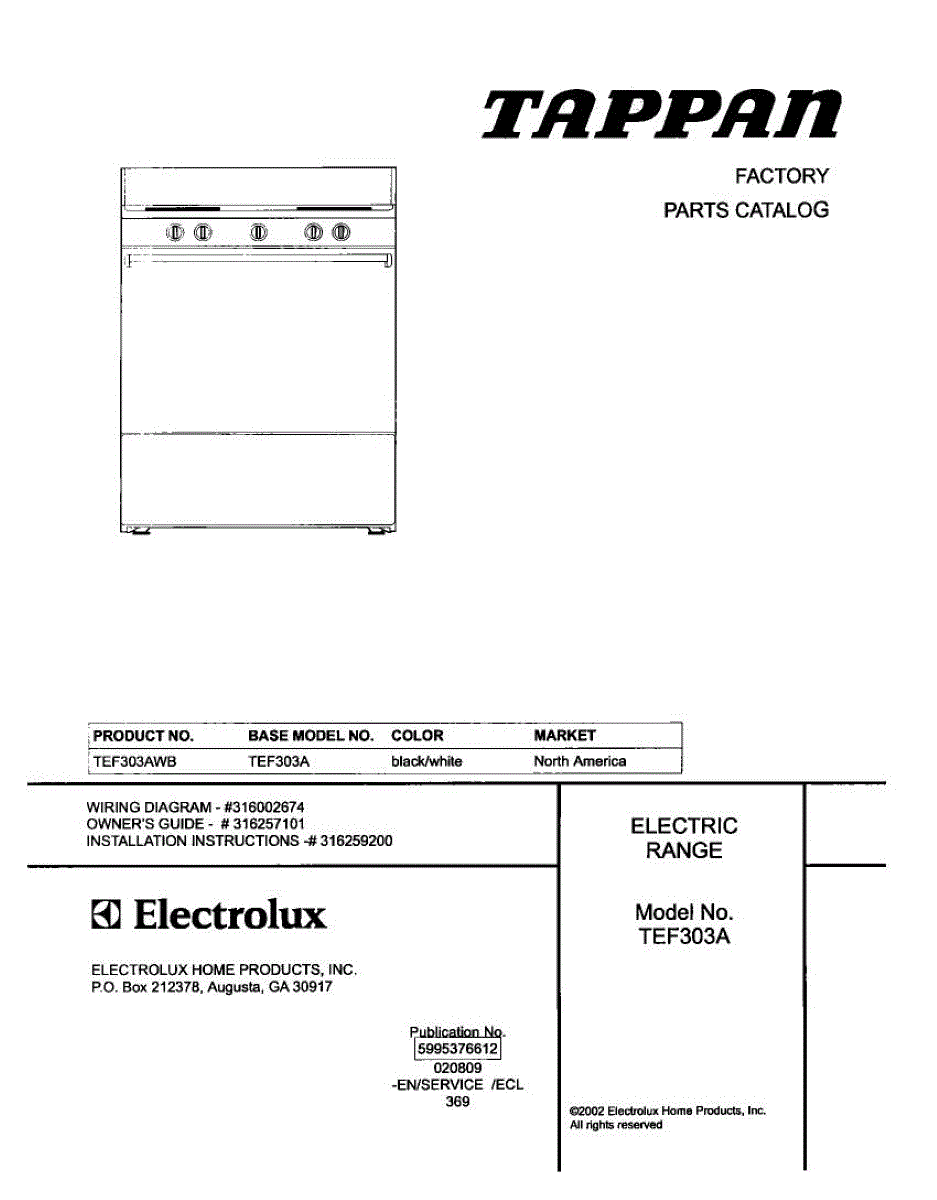 Parts for Tappan TEF303AWB: 01 - Cover Parts