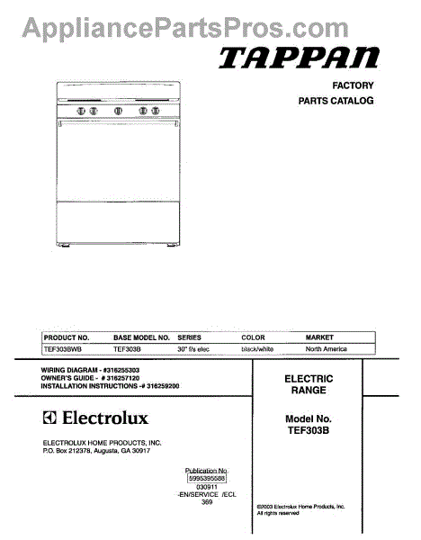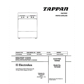 Parts for Tappan TEF303BWB: 01 - Cover Parts