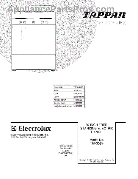 Parts for Tappan TEF303BWC: 01 - Cover Parts