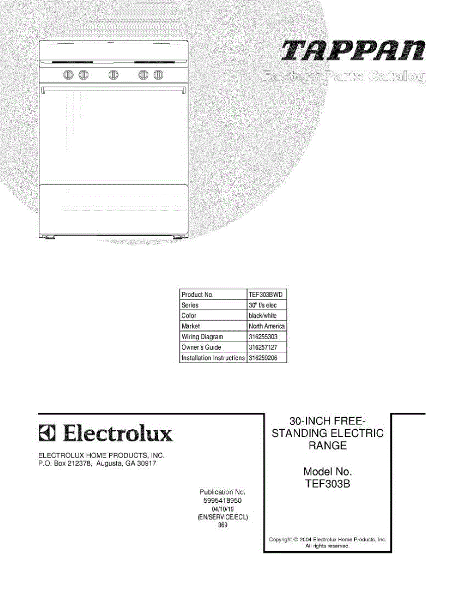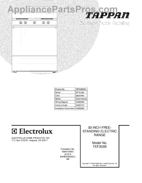 Parts for Tappan TEF303BWD: 01 - Cover Parts