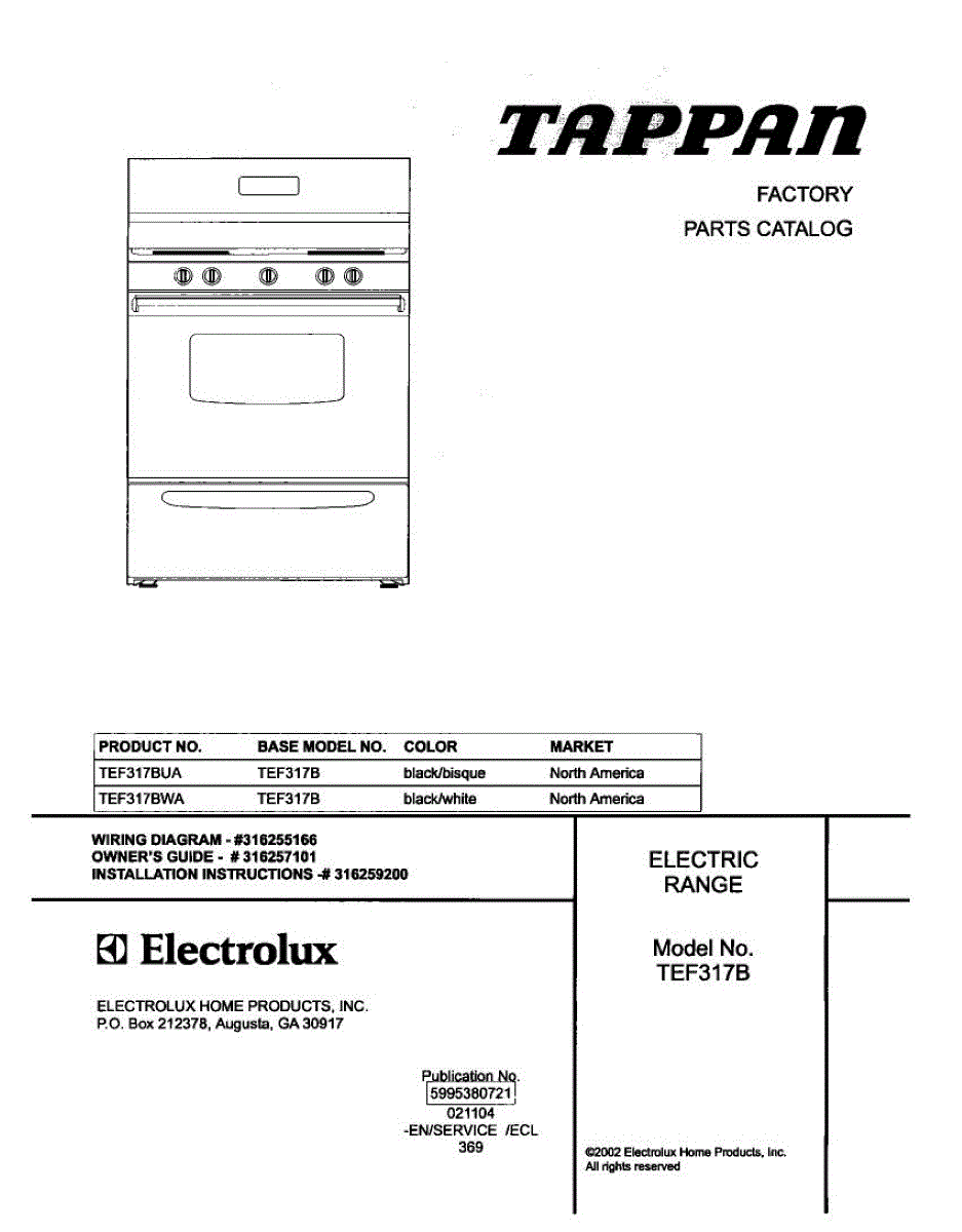 Parts for Tappan TEF317BUA: 01 - Cover Parts
