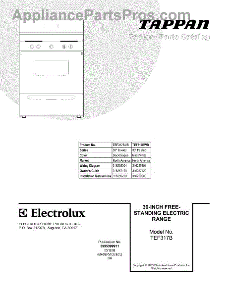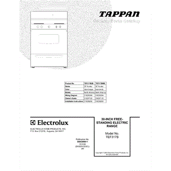 Parts for Tappan TEF317BWB: 01 - Cover Parts