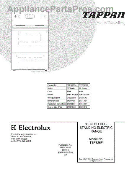 Parts for Tappan TEF326FSA: 01 - Cover Parts