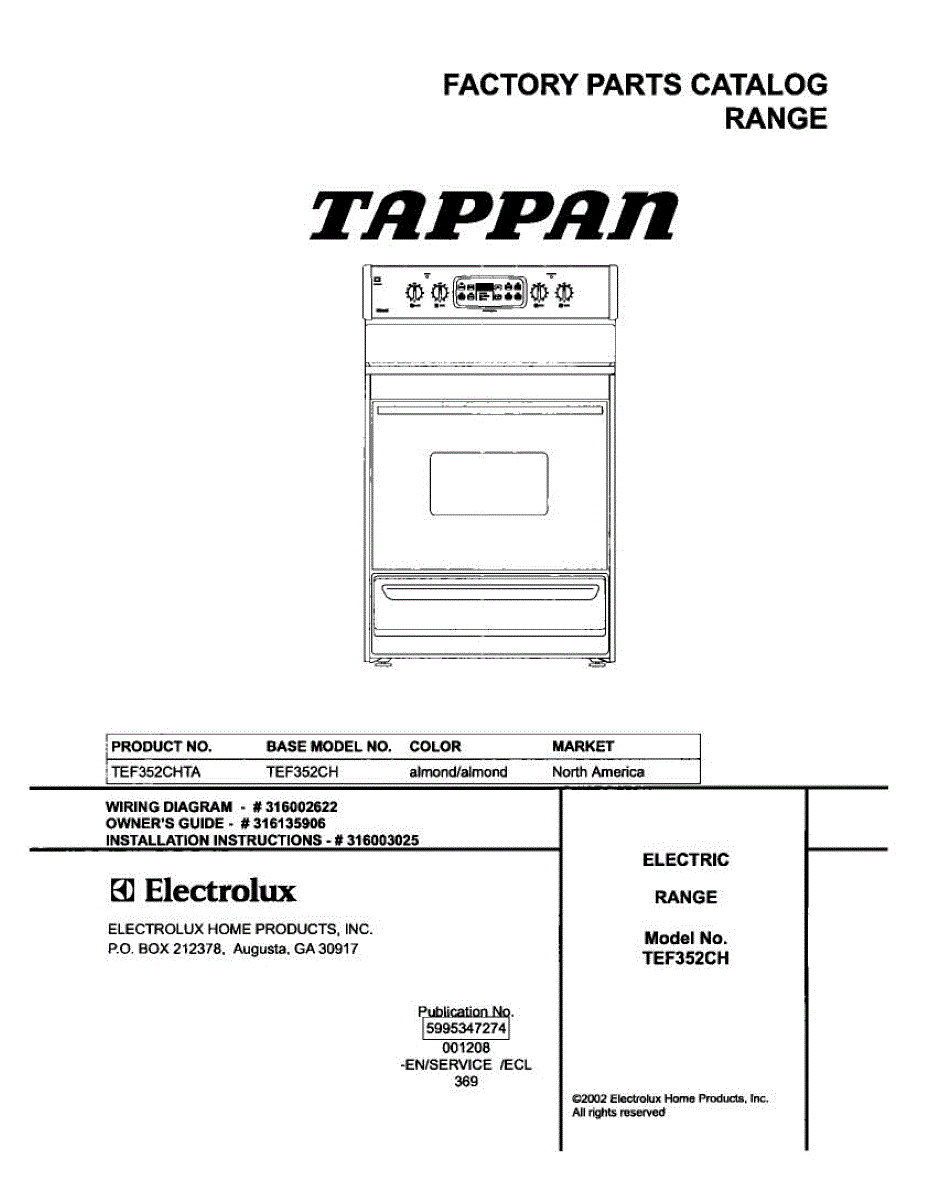 Parts for Tappan TEF352CHTA: 01 - Cover Parts