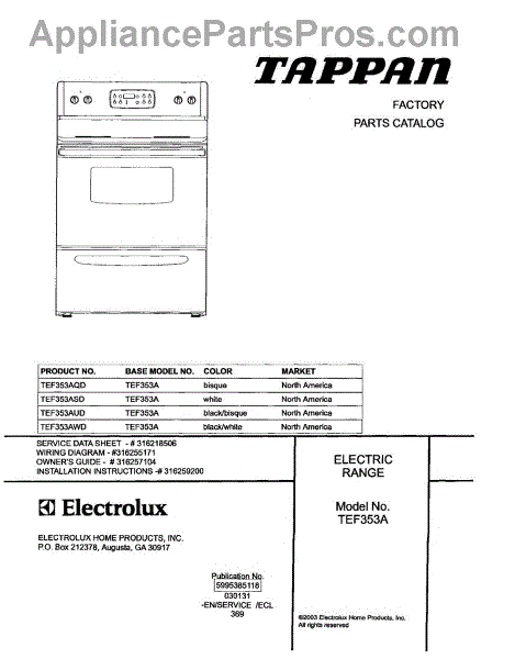 Parts for Tappan TEF353ASD: 01 - Cover Parts