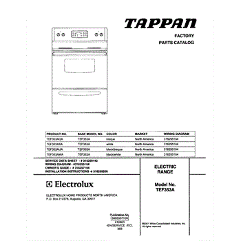 Parts for Tappan TEF353AUA: 01 - Cover Parts