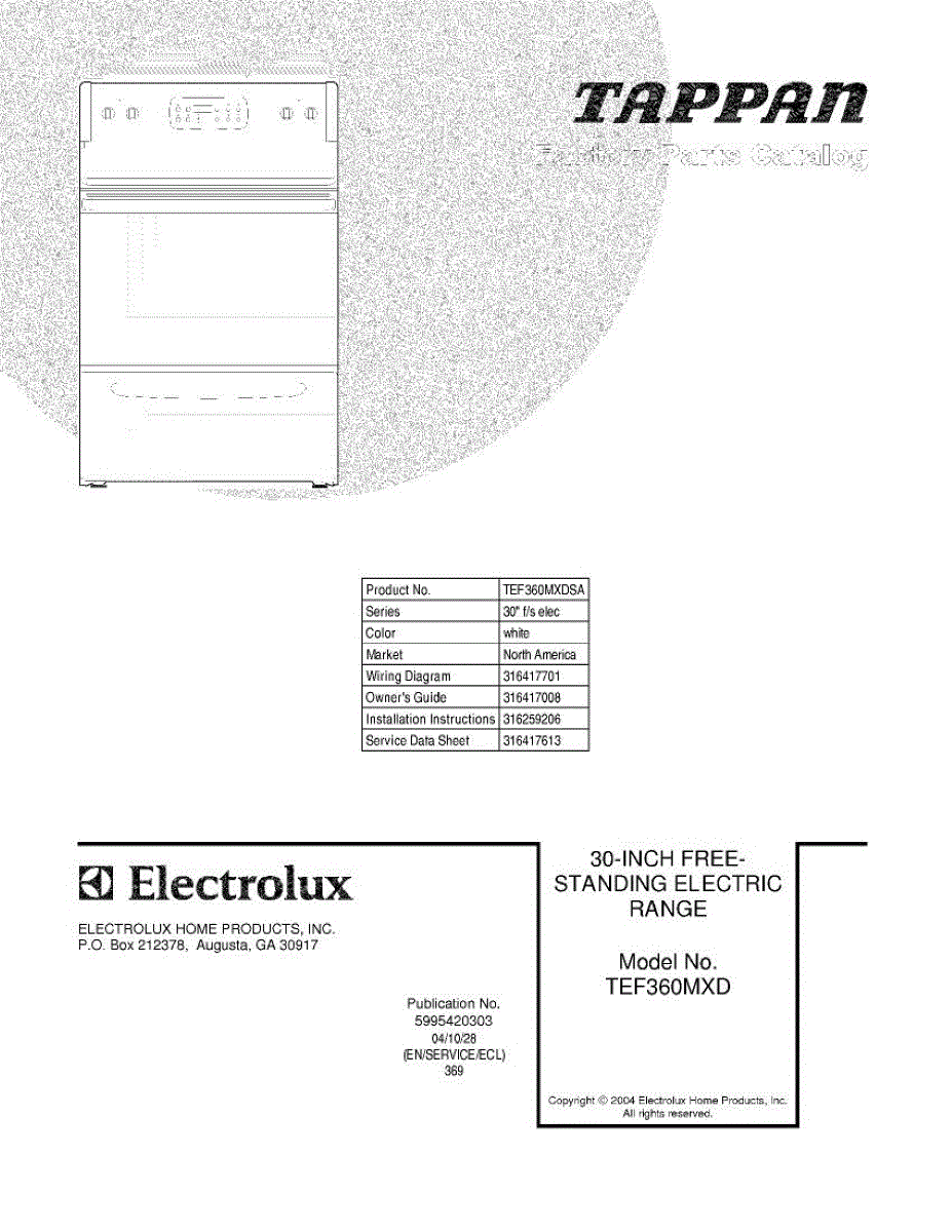 Parts for Tappan TEF360MXDSA: 01 - Cover Parts