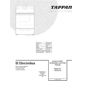 Parts for Tappan TEF361GSA: 01 - Cover Parts