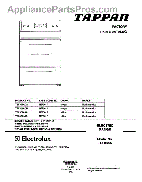 Parts for Tappan TEF364AQA: 01 - Cover Parts