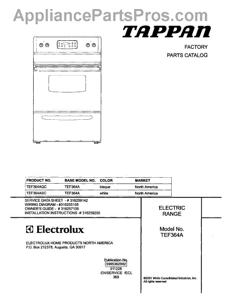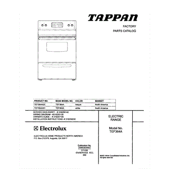 Parts for Tappan TEF364AQC: 01 - Cover Parts