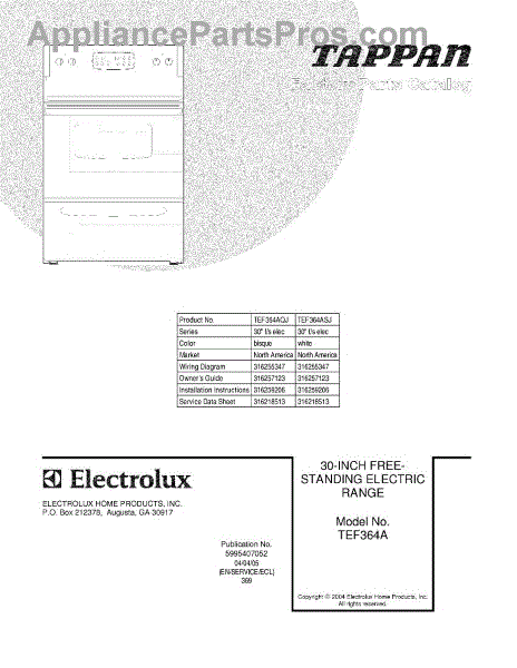 Parts for Tappan TEF364AQJ: 01 - Cover Parts