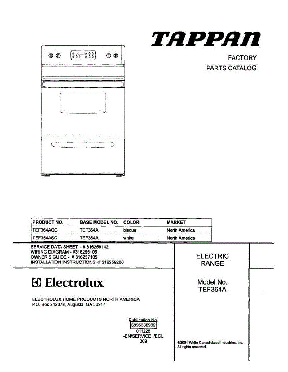 Parts for Tappan TEF364ASC: 01 - Cover Parts
