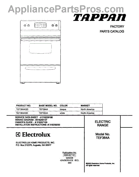 Parts for Tappan TEF364ASD: 01 - Cover Parts