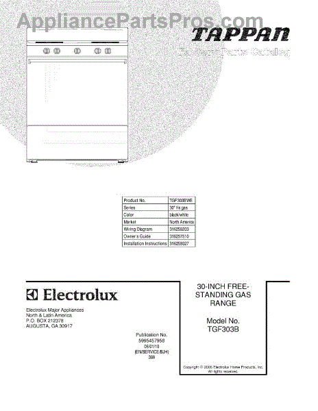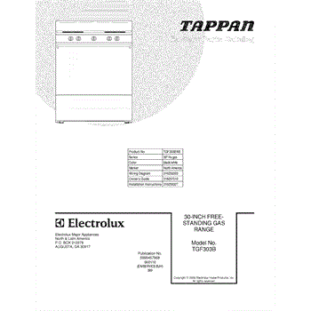 Parts for Tappan TGF303BWE: 01 - Cover Parts