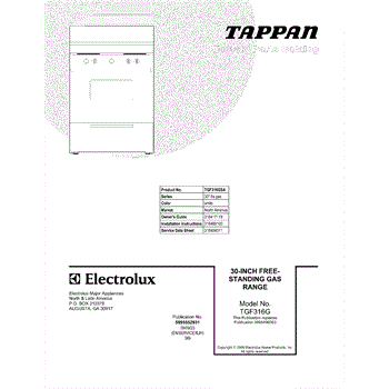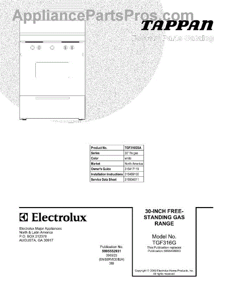 Parts for Tappan TGF316GSA: 01 - Cover Parts