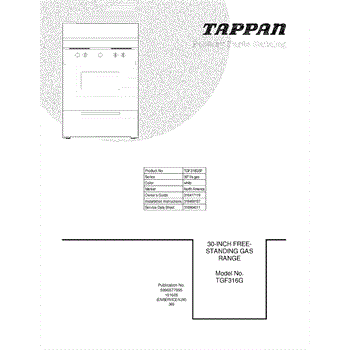 Parts for Tappan TGF316GSF: 01 - Cover Parts