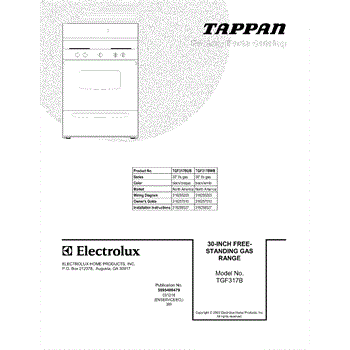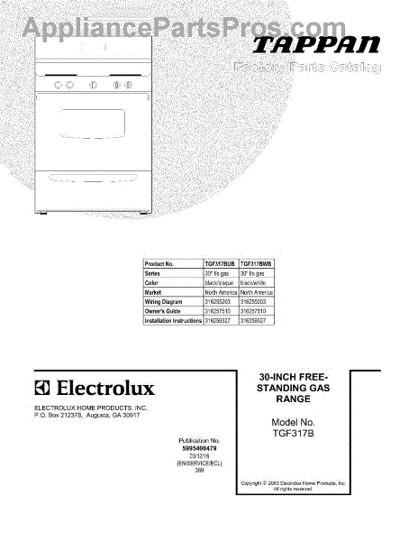 Parts for Tappan TGF317BUB: 01 - Cover Parts