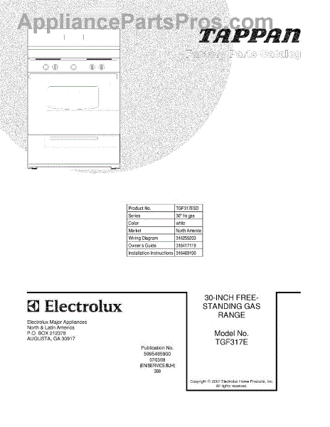 Parts for Tappan TGF317ESD: 01 - Cover Parts