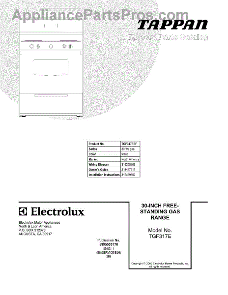 Parts for Tappan TGF317ESF: 01 - Cover Parts