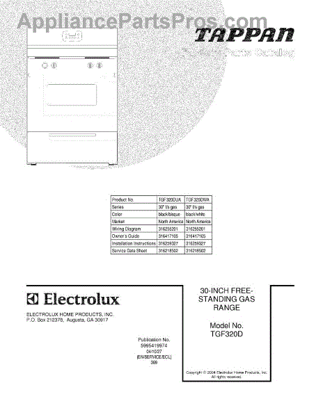 Parts for Tappan TGF320DWA: 01 - Cover Parts