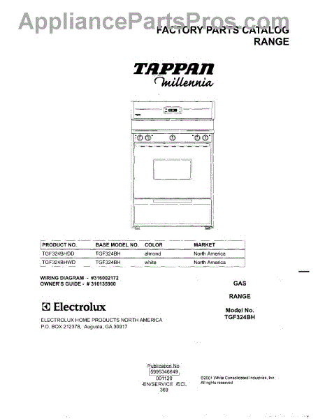 Parts for Tappan TGF324BHWD: 01 - Cover Parts