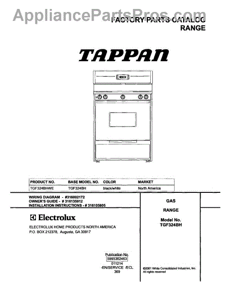Parts for Tappan TGF324BHWE: 01 - Cover Parts