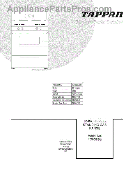 Parts for Tappan TGF328GSH: 01 - Cover Parts
