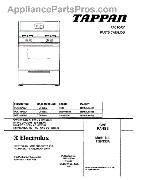 Parts for Tappan TGF336ASD: 01 - Cover Parts