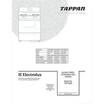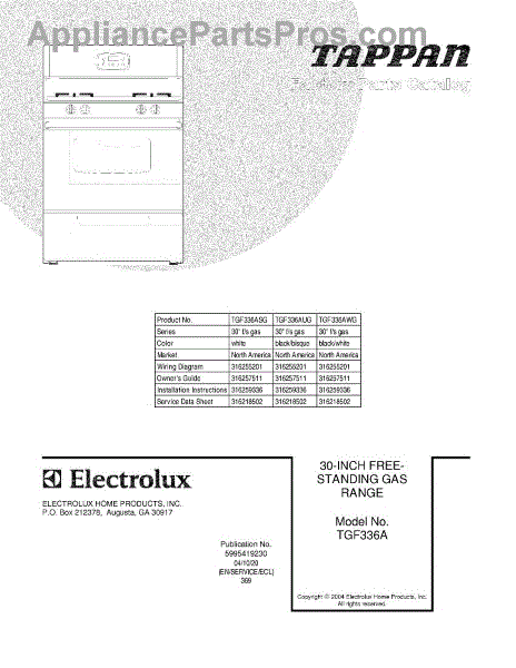 Parts for Tappan TGF336AWG: 01 - Cover Parts