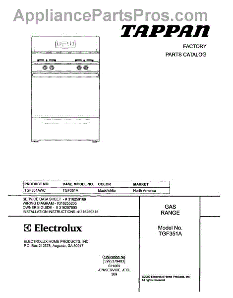 Parts for Tappan TGF351AWC: 01 - Cover Parts