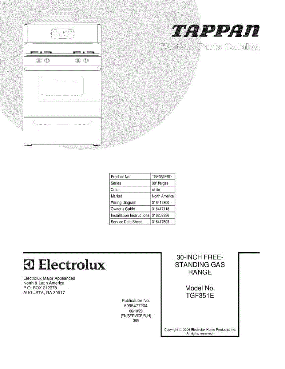 Parts for Tappan TGF351ESD: 01 - Cover Parts