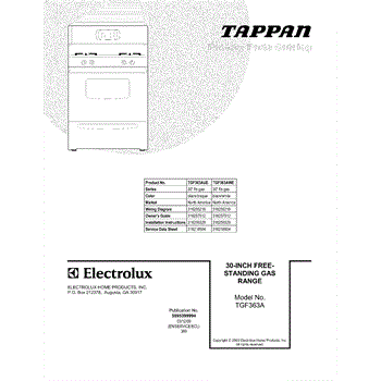 Parts for Tappan TGF363AWE: 01 - Cover Parts