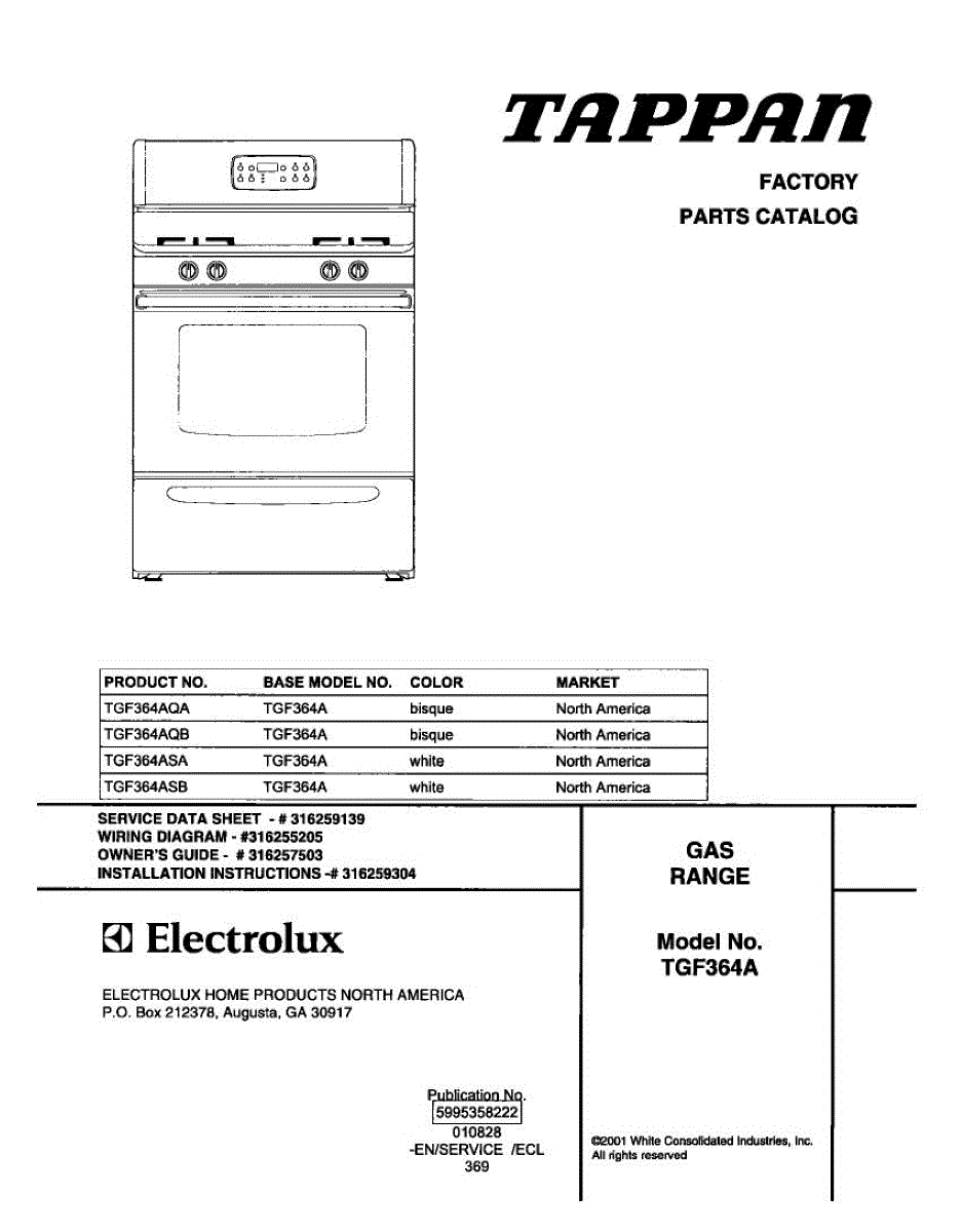 Parts for Tappan TGF364AQA: 01 - Cover Parts