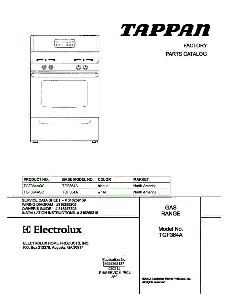 Parts for Tappan TGF364AQC: 01 - Cover Parts